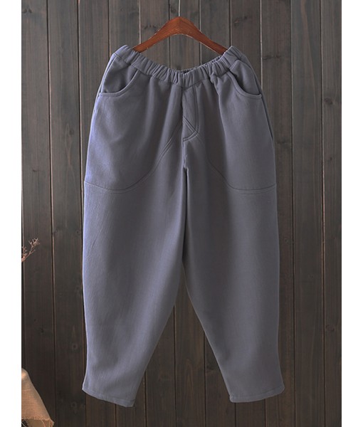 Casual Loose Solid Color Pockets Thicken Cotton Trousers